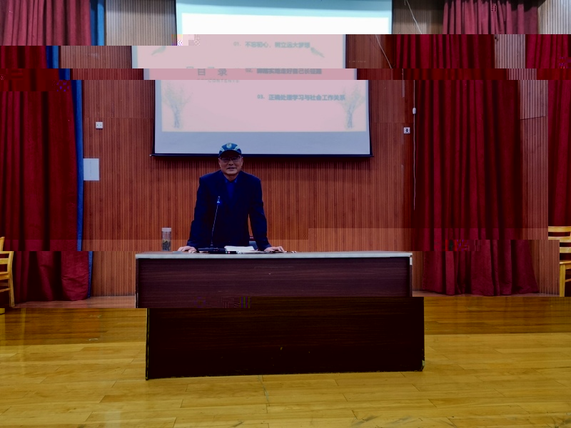 随後趙長生老師在台上講到:“我們應當不忘初心、牢記使命,争做新時代的築夢人。大學生要心懷抱負理想與信念,要有頑強的毅力,不斷加強自身的硬實力和軟實力。”最後,楊旺林老師做出總結,對19級新生提出三點期望:心中有愛,熱愛學校、熱愛專業、熱愛生活;有夢想、有激情、有活力;耐得住寂寞,守得住本心。寄語大家要“珍惜生活,編織生活”,“好好學數學、好好學物理,你會發現人類的智慧也可以璀璨無比!”