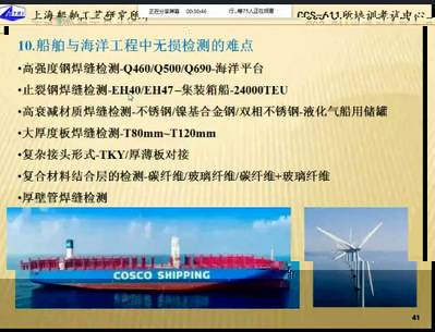 在講座中,丁兵教授介紹無損檢測的基本原理,詳細講述了多個船舶建造和海洋工程中無損檢測的現場應用事例,并就行業無損檢測的難點和同學們展開熱烈的讨論。講座中同學們踴躍發言,就船舶行業無損檢測的情況和無損檢測的就業前景和發展方向提出疑問,丁教授就當前形勢和行業發展發向做出了細緻的解答,并熱情邀請我專業學生到611所工作。