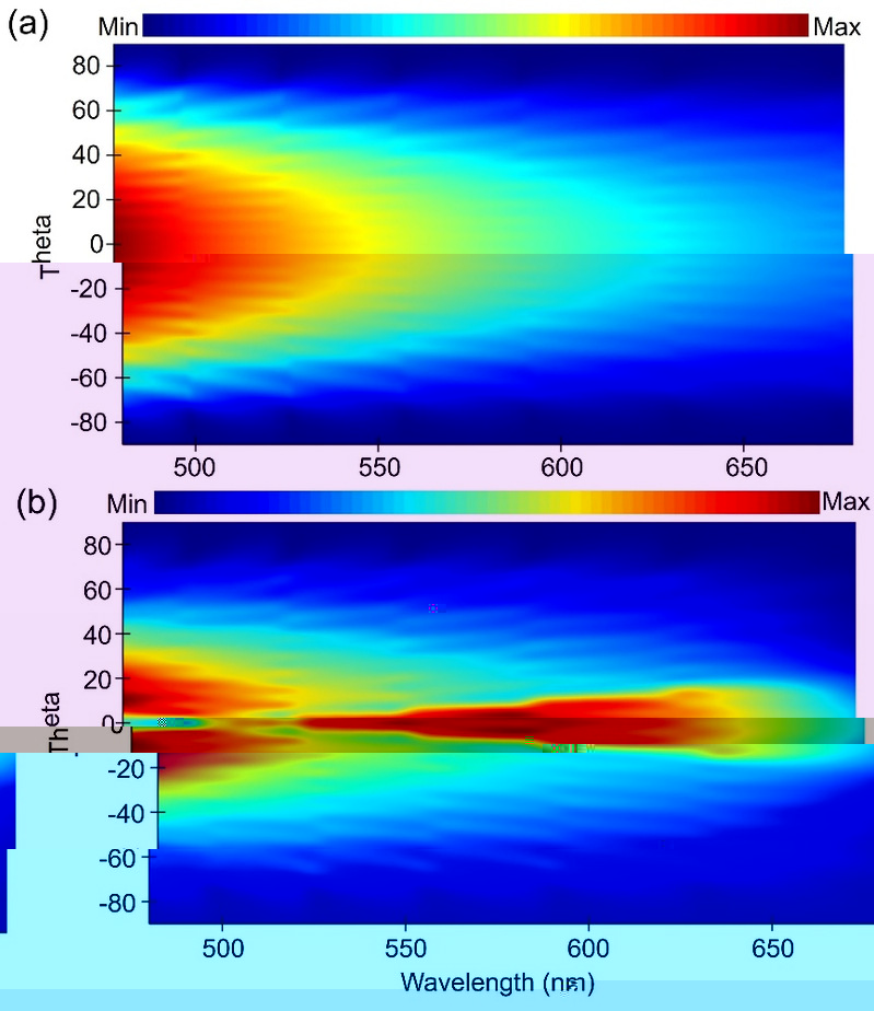 圖1 平面OLEDs(a)和結構化OLEDs(b)的遠場強度分布圖