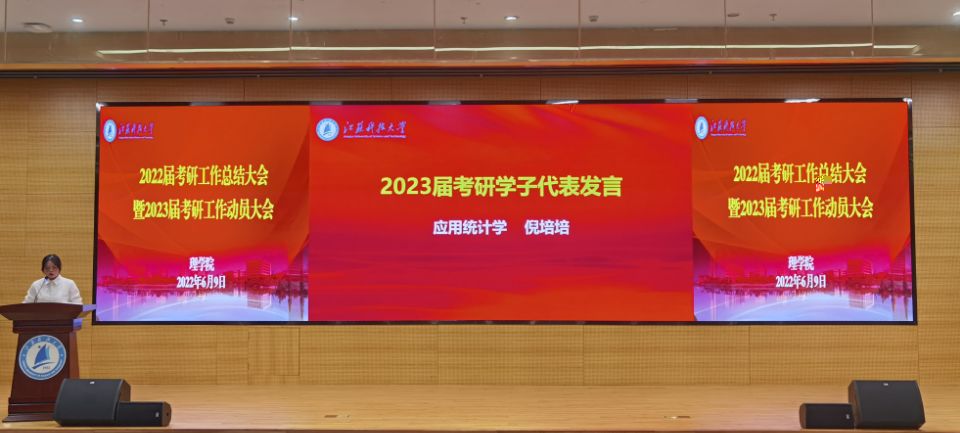 學院2022屆畢業生代表分别進行交流發言。應用統計學專業的李宇峰分享了自己的備考心得,複習期間對不同科目逐一攻破,堅持恒心、韌心、吾心,最終成功上岸。應用物理學專業的王浩從學風建設的角度,分享了班級同學同心勠力、砥砺前行的故事。學院物理電子學專業研究生趙洪達立足求職差異,從行業選擇、個人發展、薪資待遇等方面鼓勵廣大本科畢業生努力提高學曆。應用統計學專業倪培培同學代表2023屆考研學子作考研動員倡議,鼓勵同學們相信自己,堅持到底,做一個目标明确、奮勇向前的追夢人。