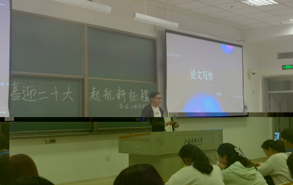 接下來上台的是19級應用物理專業朱士躍,他主要介紹了論文手在比賽前期應該做的準備,同時在分享時提到:“論文手在初期作用其實并不是很大,主要是從文獻開始看起,并在整個建模過程中貫穿始終。”