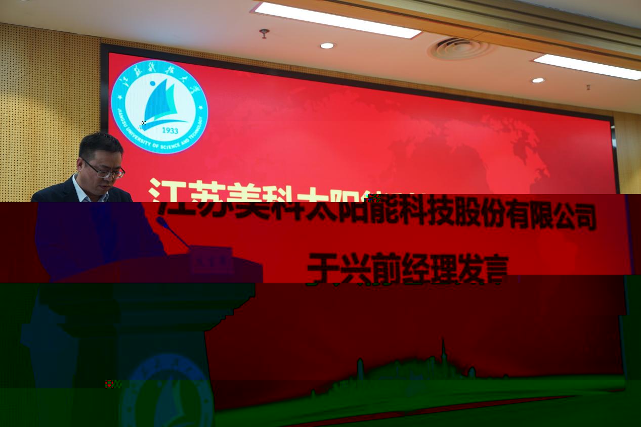 江蘇美科太陽能科技股份有限公司于興前經理作為用人單位代表進行發言,他全方位介紹了企業的特色優勢,對深入校企産學研合作,促進資源共享、優勢互補,實現學生、學校、企業三方共赢進行了展望。