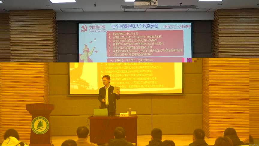 校圖書館黨總支書記、館長劉清生為各位積極分子開講第一課。在講座中,劉書記為全體學員帶來了以“築牢思想根基 滋養理想信念”為主題的學習黨的二十大精神的黨課。劉館長的黨課不僅讓大家充分認識學習宣傳貫徹黨的二十大精神的重大意義,還以親身經曆向大家展示了黨和國家建設的偉大成就,分享了新時代的偉大變革,号召大家認真做好黨的二十大精神的學習宣傳,并堅持學思用貫通、知信行統一,把黨的二十大精神體現到自身的學習和工作之中。