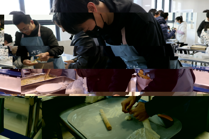 上午十點,老師們和同學們早早來到學生社區和食堂開始忙碌,和面、分餡等忙得熱火朝天。包餃子過程中,大家自動分工協作,你擀皮,我包餡,笑語不斷,情緒高漲,老師同學們用自己拿手的方法包着各式各樣的餃子,切磋包餃子的技巧,現場洋溢着滿滿的“家”味,處處是溫馨的景象。有些同學還用心地将糖果、巧克力包進餃子,讓師生時時吃到驚喜。