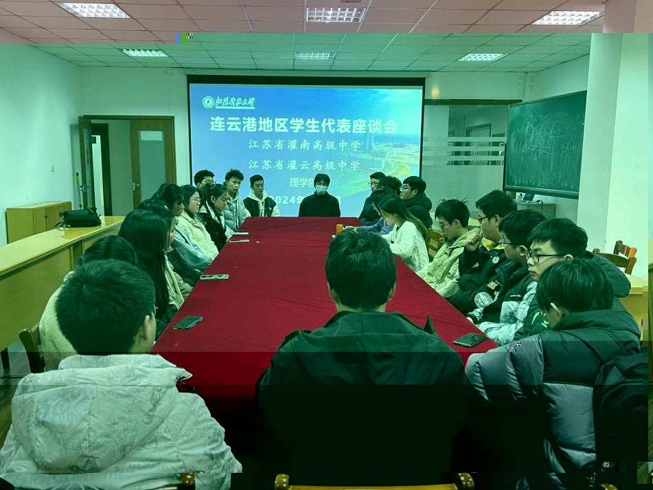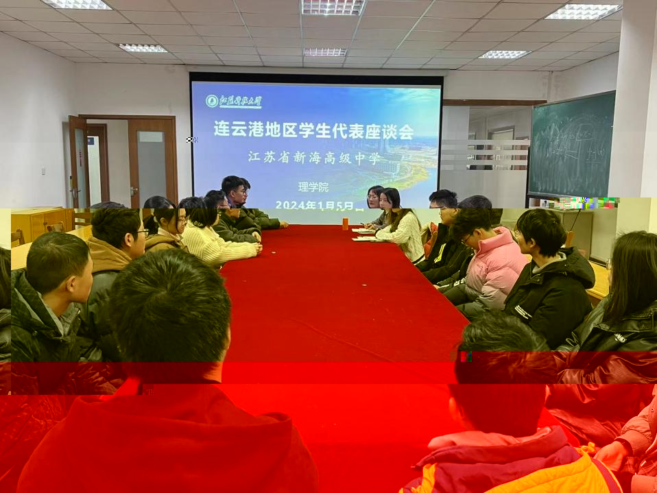 1月5日下午,伟德国际1946官方网在夢溪校區303會議室召開連雲港地區學生代表座談會,學院輔導員劉培培和來自江蘇省新海高級中學、江蘇省灌南高級中學、江蘇省灌雲高級中學三所生源地中學的近40名學生代表參加座談會。會議由院黨委副書記周志輝主持。
