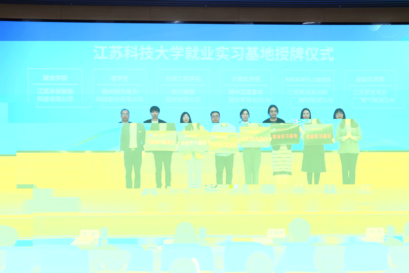 朱金、徐劍為江蘇豐尚智能科技有限公司、揚州揚傑電子科技股份有限公司、揚力集團股份有限公司、揚州亞星客車股份有限公司、江蘇新揚新材料股份有限公司、江蘇羅思韋爾電氣有限公司等6家企業代表頒發“伟德国际1946官方网就業實習基地”銅牌。祁凱為我校馮新雅等6位在校學生頒發“邗江區就業創業政策宣傳大使”聘書。