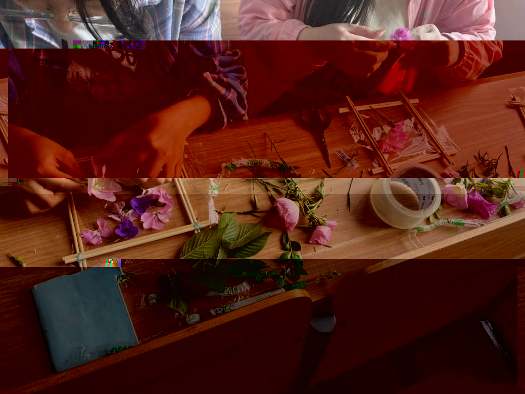 活動中,同學們利用一次性筷子、快遞廢紙箱等日常廢棄物,巧妙構思,親手搭建畫框結構,并創造性地融入自然元素,大家走出戶外,在明媚的春光采集自然的恩賜,如校園内撿拾的春日落葉與花瓣,制作出了精緻多樣的環保畫框,作品既環保又充滿生機,展示了大自然與人文創意的完美結合。