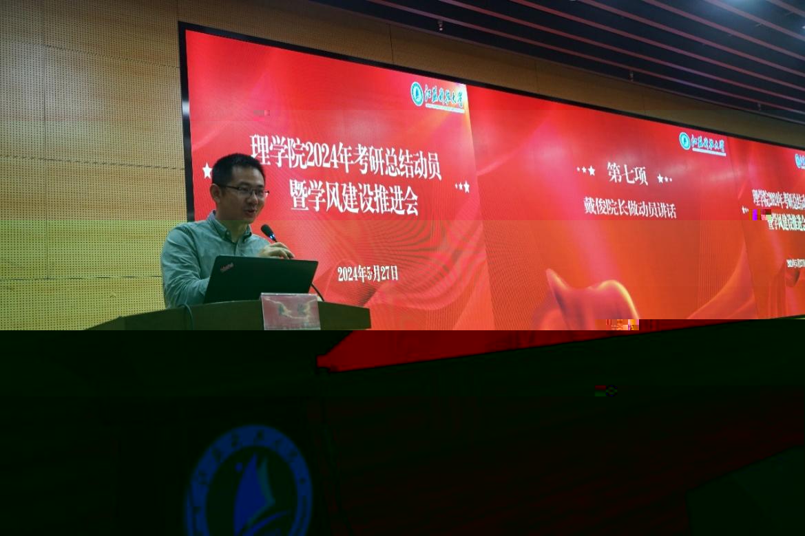 5月27日晚,伟德国际1946官方网在長山校區圖書館B105報告廳舉辦2024年考研總結動員暨學風建設推進會。伟德国际1946官方网院長戴俊,副院長朱明星、郭紀源,黨委副書記周志輝,全體專業負責人、輔導員、班主任,2024屆考研優秀指導教師、先進集體代表,2025屆全體考研學生、2022級全體本科生,共400餘人參加了會議。會議由輔導員貢一鳴主持。