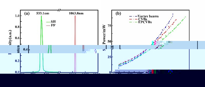 随着非線性光學的發展,結構光束的二次諧波(SH)已經成為一個熱門話題,高階龐加萊球(HOPS)光束也不例外。對于HOPS光束,除了滿足能量和動量守恒外,渦旋光束的SH還需要滿足軌道角動量(OAM)守恒,導緻OAM加倍。由于非線性晶體的線性偏振依賴性,矢量光束的SH存在一定的挑戰。盡管MgO:LiNbO3、BBO和BIBO等兩種正交非線性晶體的“三明治”結構已被應用于矢量光束的SH,但SH轉換效率從0.38%降低到2.4%。此外,HOPS光束的SH,特别是橢圓偏振的圓柱矢量光束(EPCVBs)和圓偏振渦旋光束,還沒有得到系統的研究和報道。