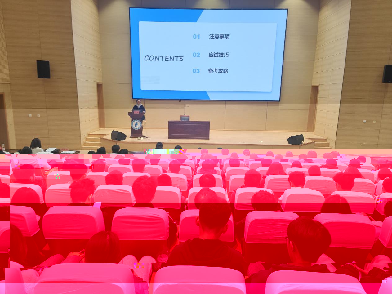 要犯錯;根據題目要求拟簡單草稿,明确寫作思路;語言第一位、結構第二位、内容第三位原則。聽力方面,曹莉老師分别分析了新聞聽力、長對話聽力、篇章聽力三種題型提高答題準确率的有效方法。閱讀方面,曹莉老師詳細講解了選詞填空、長篇匹配、篇章閱讀的題型特點和解題步驟。翻譯方面,曹莉老師表示,真題涉及到文化、經濟、社會發展、自然風光、城市、教育等方面,同學們要通讀全文,理解漢語表達的語義和語境;拆分長句,合并短句;注意中英文的表達差異,還要考慮語法、拼寫等。曹莉老師鼓勵同學們在備考過程中保持積極的心态和堅定的信念。