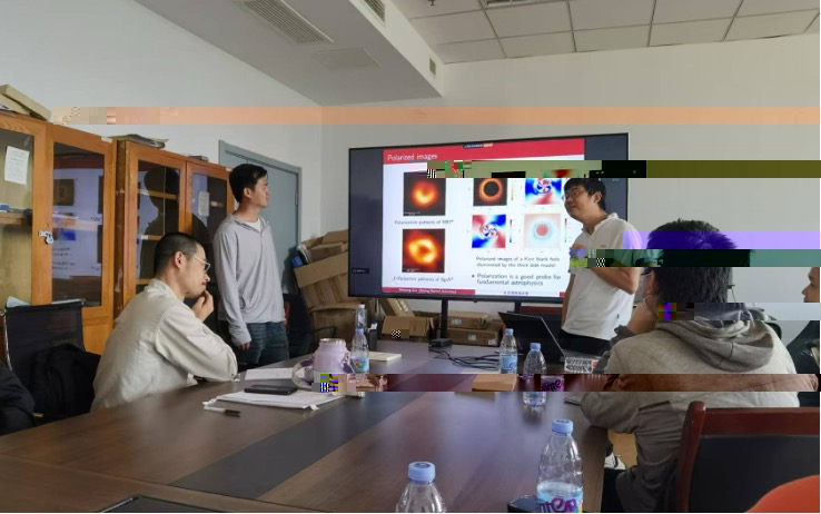 短暫休息後,郭敏勇副教授為大家帶來題為《近視界偏振——從偏振圖像揭示黑洞自旋》的學術報告。郭老師首先從“什麼是吸積盤中等離子的偏振”入手,通過展示兩張著名的黑洞圖像,生動地講解了黑洞的基本性質及其與吸積盤等離子體之間的内在聯系,使在場師生對其研究内容有了直觀認識。