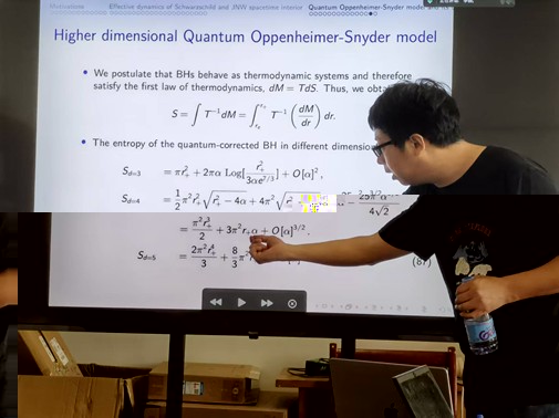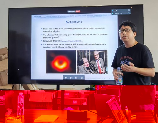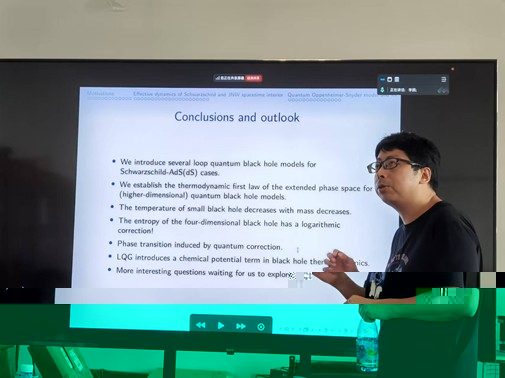 張教授報告的會議題目是“量子幾何,黑洞和熱力學”。張教授通過層次分明和條理清晰的講解,引導聽衆逐步理解其如何将微觀的量子理論與宏觀的黑洞模型結合起來,展示了其在圈量子引力領域的深入研究與思考。