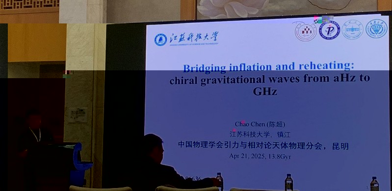 陳超老師則帶來了題為《Bridging inflation and reheating: chiral gravitational waves from aHz to GHz》的報告。陳老師緻力于分析早期宇宙中手性引力波信号,建立暴脹階段與再加熱過程之間的聯系,不僅揭示了手性引力波的産生機制,更為宇宙起源模型的檢驗提供了新的理論視野。
