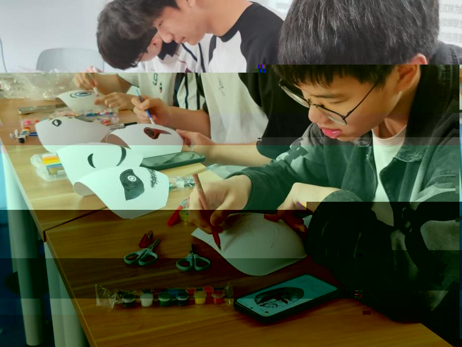 在“面具繪夢坊”,一張張空白的面具成為同學們表達内心世界的畫布。活動現場提供了豐富多樣的繪畫工具,同學們充分發揮想象力與創造力,用絢麗的色彩、獨特的圖案裝飾面具。有的同學繪制出充滿希望的陽光、花朵,展現積極樂觀的心态;有的則用神秘的線條與暗色調,表達内心深處的困惑與思考。繪畫過程中,大家沉浸在自我創作的世界裡,将平時難以言說的情緒與想法通過畫筆傾瀉而出。繪制完成後,大家紛紛戴上自己的作品拍照打卡。