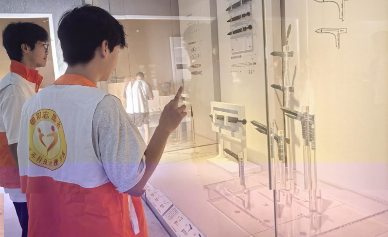 在“吳風楚韻”展廳,三件文物引發同學們的深度探讨,軍事史愛好者陳同學指着一把戈向同伴講解,“但紋飾上的鳥篆又賦予它禮器身份——這就是青銅器的雙面性。”